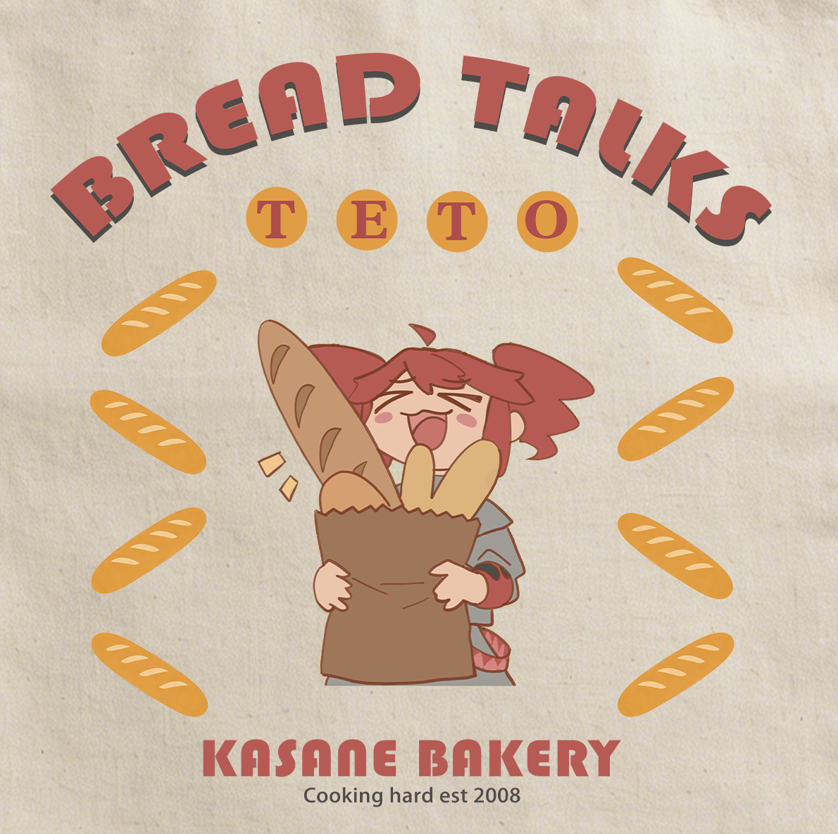 Straight from the Kasane Bakery! Carry all your baguettes and goods in this stylish, durable tote bag featuring a unique visual cooked up specifically for Teto Day!